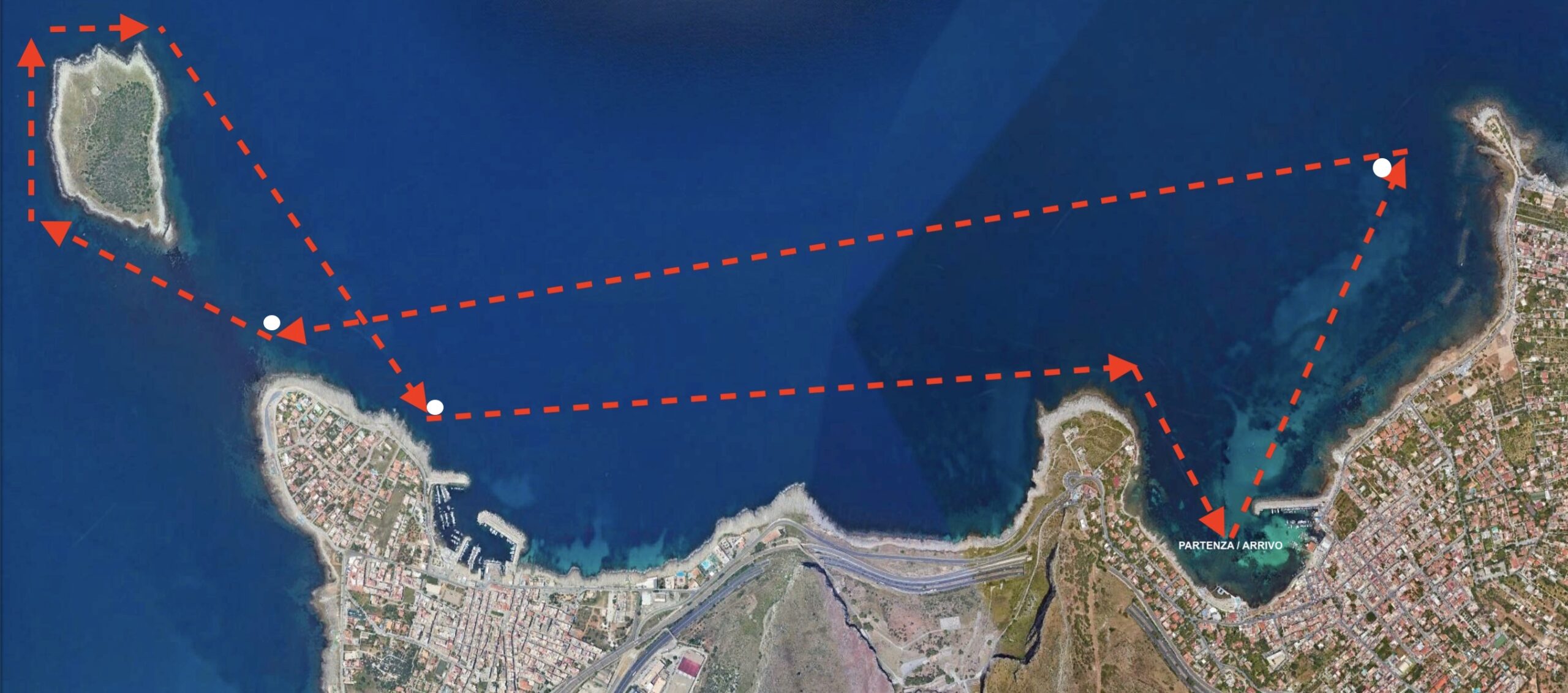Da qui si prosegue in direzione Nord Ovest verso l’isolotto che dovrà essere lasciato verso destra. Completato il giro dell’isola, si dovrà fare ritorno passando per la boa sottocosta in direzione del porto di Isola delle Femmine.